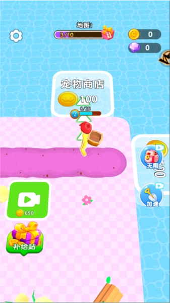 5、下一个目的地宠物商店,需要100个金币才能解锁,这时需要去挖宝争取金币