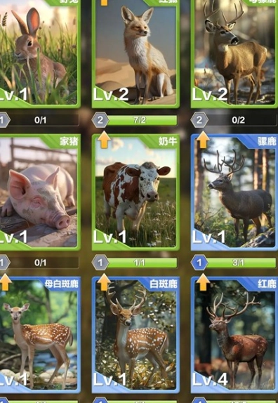 每次狩猎可获取卡牌碎片解锁动物卡牌,每张卡牌都有不同的卡牌加成能力,升级卡牌可以提升卡牌技能,在猎友们狩猎结束时能提供更多分数。