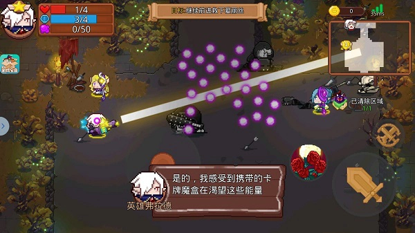 2、打BOSS学会放风筝和躲技能,新手打前面的图,不需要刻意凑卡牌,一路撸过去,很难输。