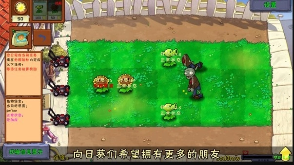 4、与原版植物大战僵尸一样,只要在几个轮次的阻击中,成功消灭所有僵尸,即为顺利通关。