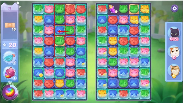 《喵与筑》 作为一款猫咪三消游戏,既能随心搭配十余种喵咪技能,又可享受多种炸弹提供的消除盛宴。灵活的技能组合+适时的合成炸弹,丰富了各位铲屎官们的消除之旅。在前期关卡中,由于所选猫咪受限,相较于搭配猫咪技能,技巧型的炸弹合成更为实用哦!