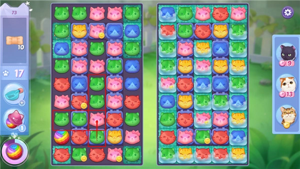 创新融合玩法:独具匠心地融合消除、装扮以及猫咪养成等元素。消除关卡的设计精彩纷呈,毛线球、玩具鼠等各类道具丰富多样,别具一格的大招组合为消除过程增添了策略性。装扮玩法涵盖猫咪配饰的穿搭以及家园主题的打造,玩家可在数十种家具中自由搭配,构建专属于自己的喵呜小镇。养猫环节既真实又有趣,通过与猫咪互动能够提升亲密度,进而解锁猫咪日志以及新的动作。
