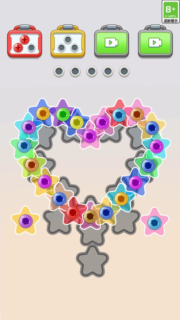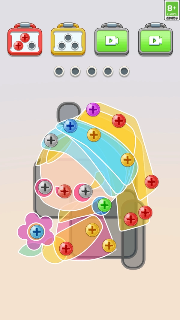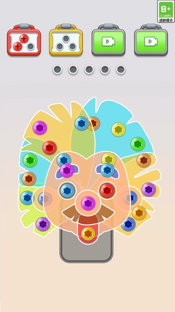 趣消螺丝钉游戏,这可是一款趣味性十足的拼装消除类游戏哦!在游戏过程中,屏幕上会呈现出各种独特造型的图案。你需要做的,就是将不同颜色的螺丝钉准确无误地拼进对应的孔洞之中,以此来完成图案的修复。随着关卡的不断推进,图案会从最初的简单逐渐变得复杂起来,这对大家的色彩识别能力、形状匹配能力以及策略规划能力,都是一种极大的考验呢!怎么样,快来开启这场奇妙的修复冒险之旅吧!