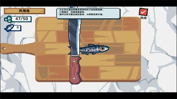 钓上的鱼并非终点,而是另一场考验的开始。拿起刮鳞刀,你需要精准而迅速地清理鱼鳞。不同的鱼类鳞片硬度各异,有的光滑易脱,有的坚硬如甲。手法太轻会留下残鳞,太重则会损伤鱼肉。只有掌握恰到好处的力度,才能成为真正的刮鳞高手。
