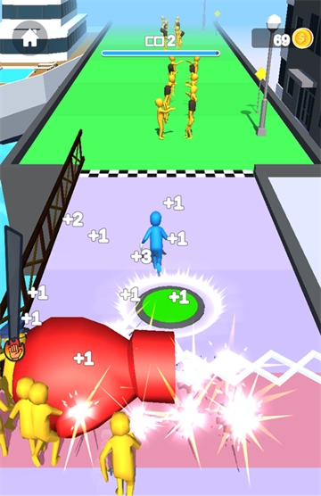 狂奔打耳光,这是一款别具特色的街头扇耳光游戏,它的英文名为“Slap and Run” 。这款游戏轻松又解压,特别适合上学的同学们和上班的朋友们在闲暇之时玩一玩。在游戏里,玩家要在限定时间内,尽可能多地击打行人。击打的行人数量越多,最后一击所获得的分数就越高;要是击打的行人数量不足,那最后一击就无法顺利过关。而那些被玩家击打的行人,会在后面追赶。此时,玩家可以借助道具,比如大拳头,把追赶的人砸飞。同时要注意,千万别踩到地上的电锯,另外,躲进纸箱里能够躲避 NPC 的追击。想要体验这款游戏的朋友们,赶紧来试试吧!
