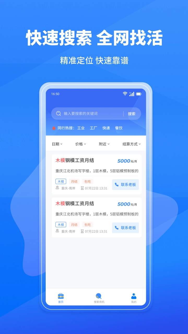 2、本系统为施工人员提供了一套便利的接单服务,以协助施工人员快速找到工作、提升工作效率及薪资水准。