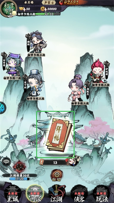 1、进入游戏,点击【拜帖】进行招收弟子。