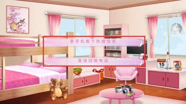 3、模拟真实社交场景,如查看男嘉宾朋友圈动态、接收节目组临时通告短信等,强化真人秀参与感。