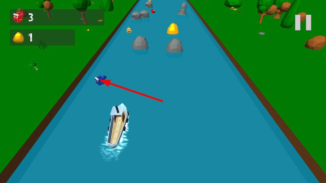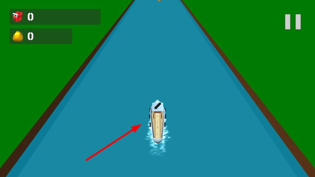 1. 操控船只自河道起始点启程,借助简单的滑动屏幕或者点击屏幕的方式,控制船只转向,躲开一开始碰到的小型障碍物。