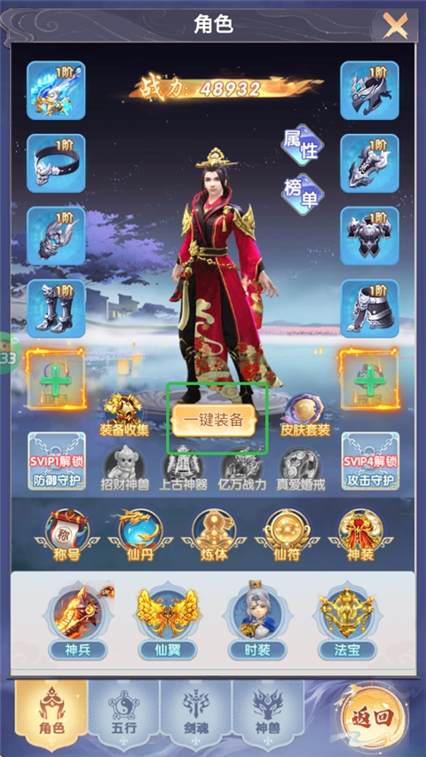 穿戴越多高阶装备,自身的各方属性都会更强,战力也会更多。