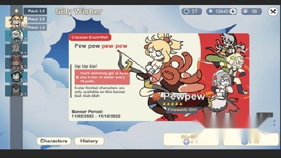 然后可以看到主界面为大聪明版的原神,有着各种版本的角色,形象非常的恶搞。