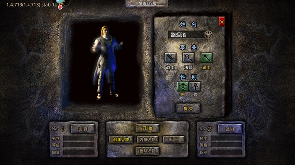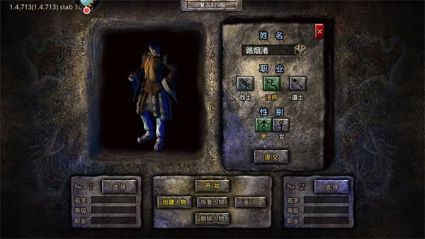 首次进入就是角色创建界面,随机选择或输入昵称。当昵称符合规范且未被他人注册时,才可以使用。可以选择职业和性别,点击“提交”开始游戏。小编这里强烈建议大家取一个霸气的名字,后面打到好装备上电视时威风的不得了。