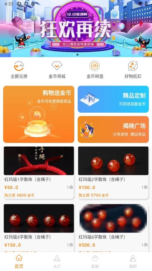 4.购物不仅能得到金币,还能享受精品定制服务,通过定制的方式获取所需商品,享受优质服务。