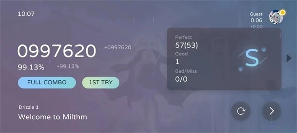 没有Bad和Miss,只有Good和Perfect时,会显示FULL COMBO。
