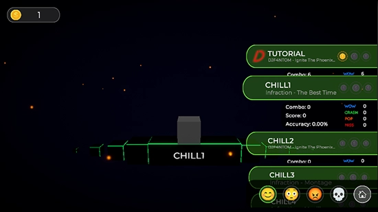 4、游戏中有Accuracy(准确率)、Combo(连击)等评价指标,反映玩家的游戏表现。