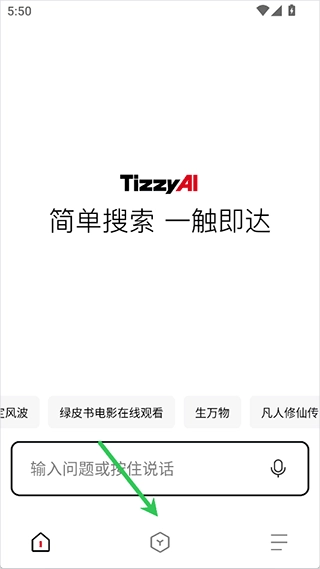 1、登录tizzyai并打开后,点击底部中间位置的图标。