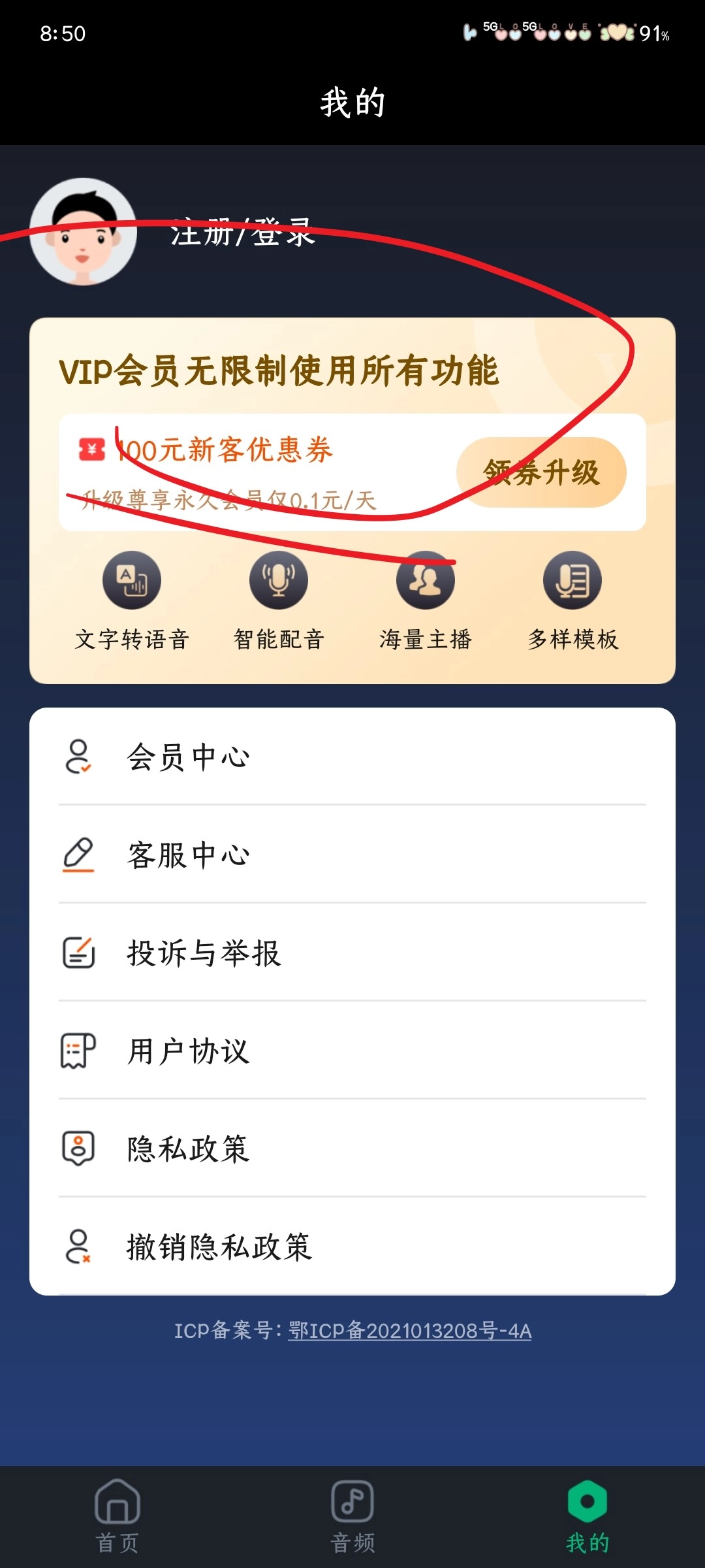 1.打开百灵配音App,首次使用支持手机号或者微信号进行快速注册登录