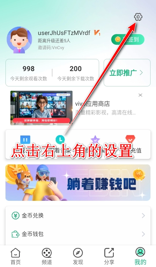 2、所以在注册账号就是会员的情况下,会员是默认开启的,只不过是v1,所以关闭方法就很简单了就是注销我们的账号,在我的页面点击右上角的设置。
