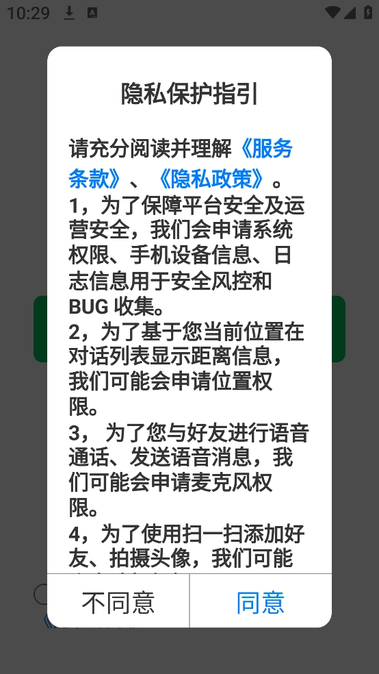 1、可直接使用最新版本的软件,进入时需先同意隐私权限。