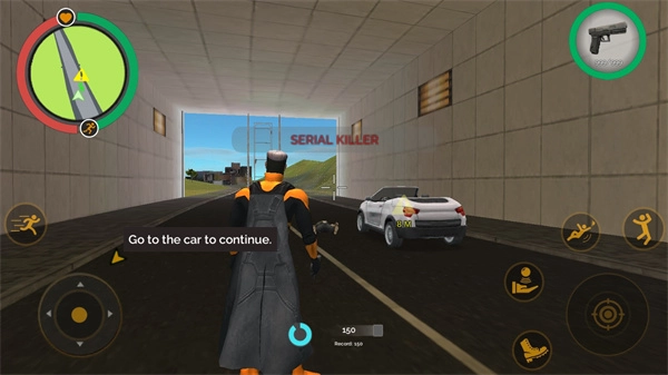 3、然后在游戏中也会有各种交通工具可以使用,比如汽车、摩托等等,我们靠近车辆点击跳跃的上方按键即可上车;