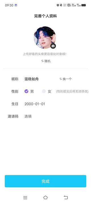 1、首先完善自己的资料信息,注意:性别选定之后不能更改