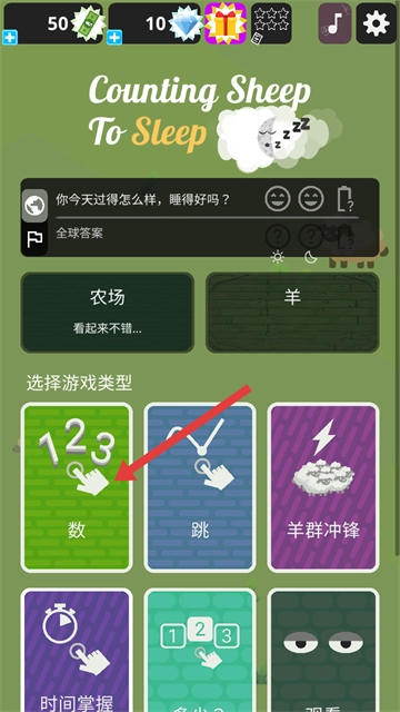1、在游戏主界面,点击【数】,进入数羊游戏模式。