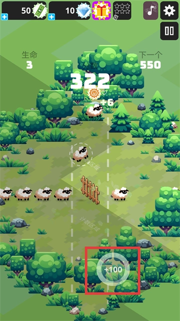 2、当羊进入红框内的虚线区域时,点击屏幕增加分数。