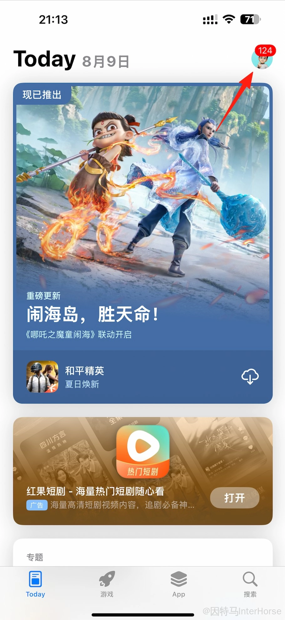 点击右上角头像。