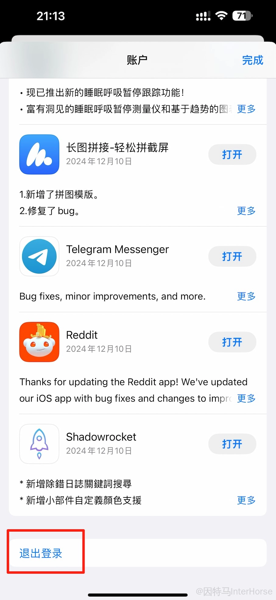 拉到最底部退出登录。