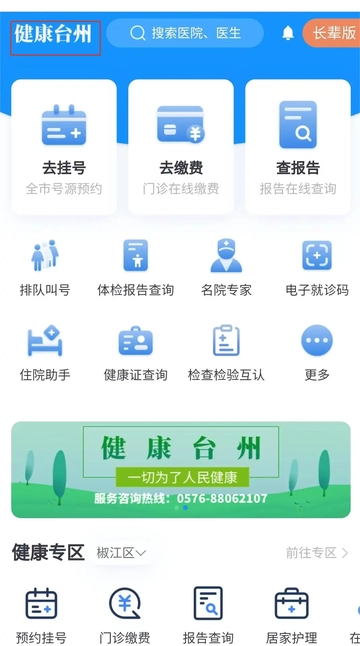 1. 开启“健康台州”应用,轻点左上角的“健康台州”标识。