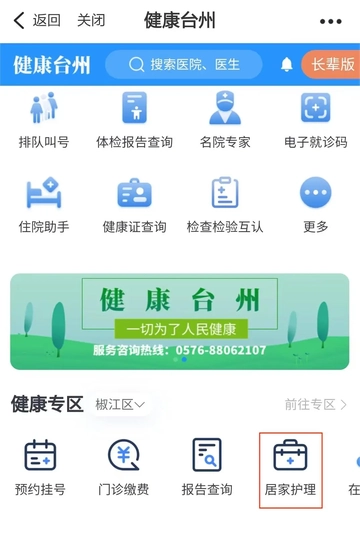 3.点击“居家康复护理”。