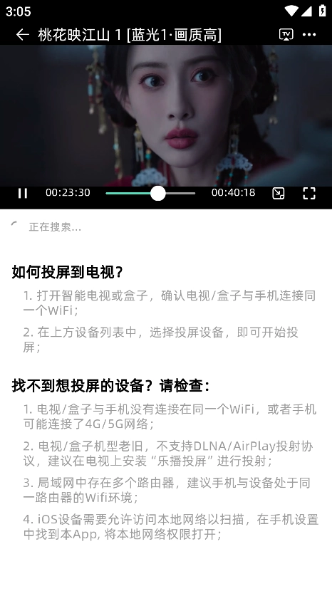 3、打开智能电视或盒子,确认电视/盒子与手机连接同一个WiFi。在下方设备列表中,选择投屏设备,即可开始投屏。