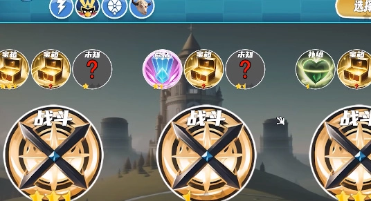 2、展开爬塔挑战,从不同关卡内选择,宝箱、补给、战斗等关卡,随着挑战将迎接更强大的对手,享受肉鸽的游戏元素。