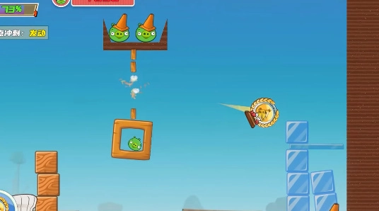 6、经典拖动和发射来进行攻击,击败场景内的全部绿猪即可通关。