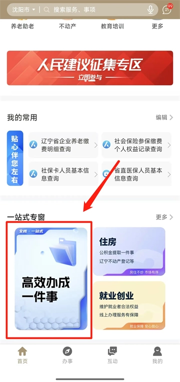 1.登录“辽事通”下拉找到“高效办成一件事”点击进入。
