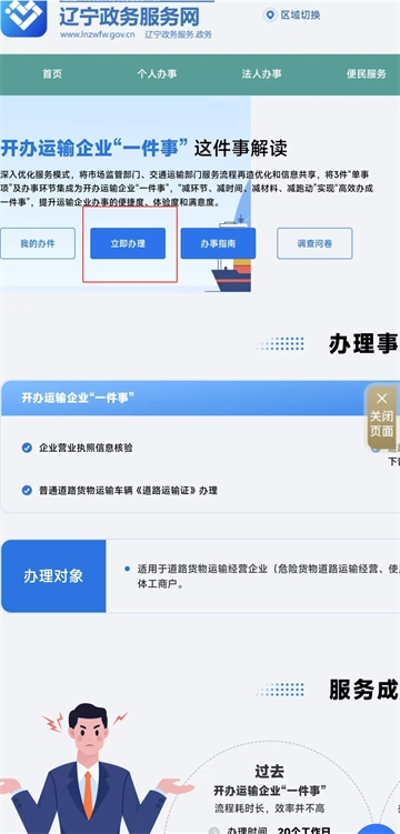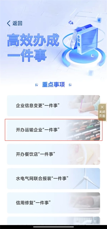 2.点击“开办运输企业一件事”。
