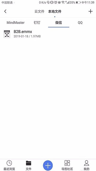 3、别人发给我的微信、QQ、钉钉接收完思维导图的源文件后,可直接打开MindMaster ,在“本地文件”里面进行查看、保存、编辑
