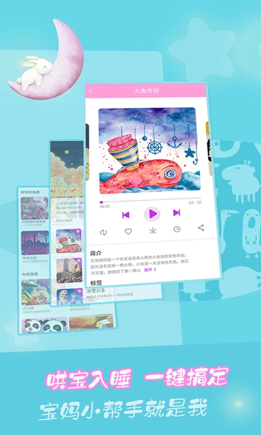 5、一键播放宝宝哄睡故事,帮助你能轻松带娃,让宝宝安静入睡;