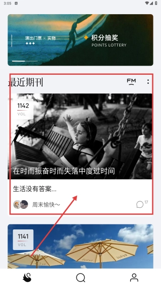 1. 在页面上点击近期刊内容,随即进入相应的期刊详情页,浏览诸如“在时而振奋时而失落中度过时间”这类主题内容以及互动信息。