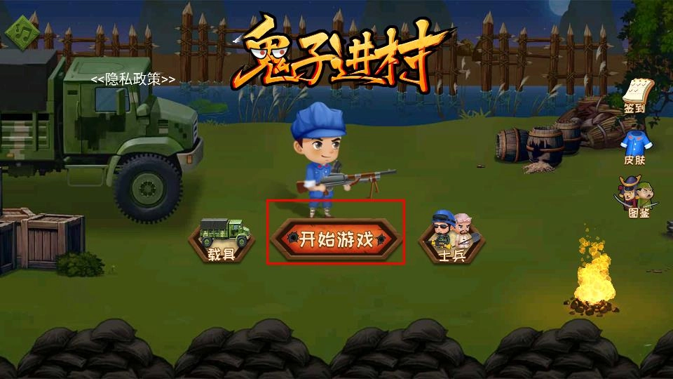 1. 首先要进入游戏界面,接着点击页面正中间的“开始游戏”按钮,从而开启抵御鬼子进村的战斗挑战,时刻准备守护村庄。