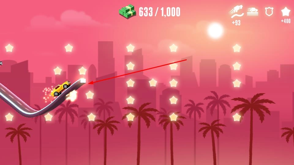 2、在游戏关卡操控车辆行驶在轨道上,借助轨道起伏等,让车辆收集星星、获取奖励积累bounty。