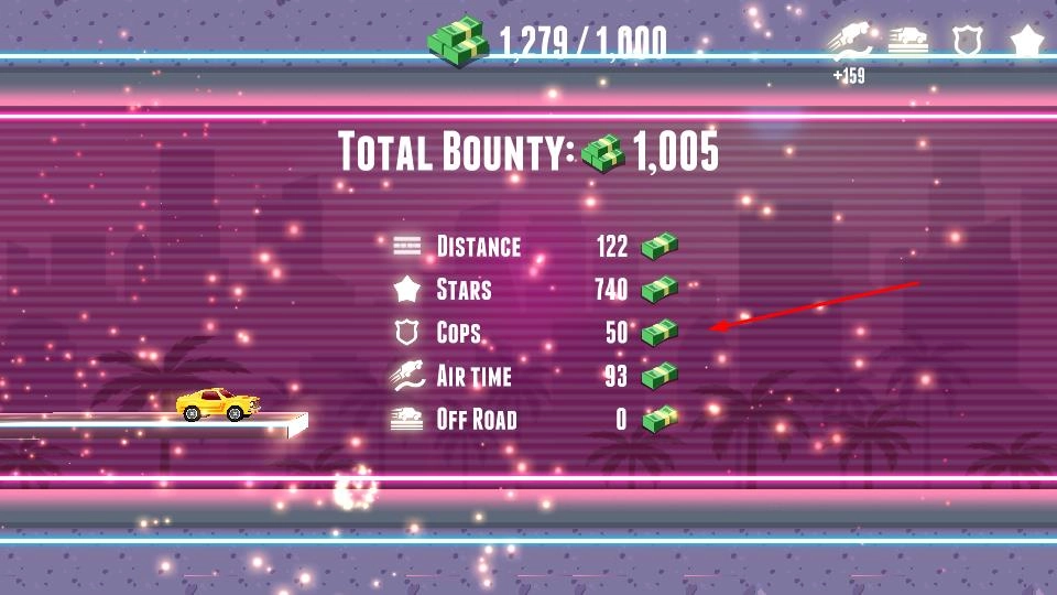 3、游戏结束后查看TOTAL BOUNTY等数据,包括距离、星星数量等,了解游戏成绩可重新挑战。