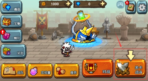 2、点击红框关卡战斗按钮,进入主要游戏模式。