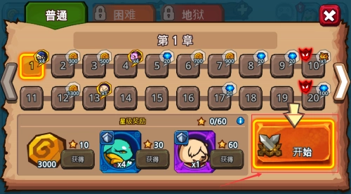 3、选择红框开始按钮,启动第一章第一关挑战。