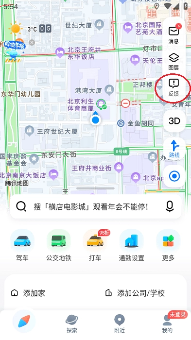 1. 开启SOSO地图,然后点击右上角的第三个选项“反馈”。