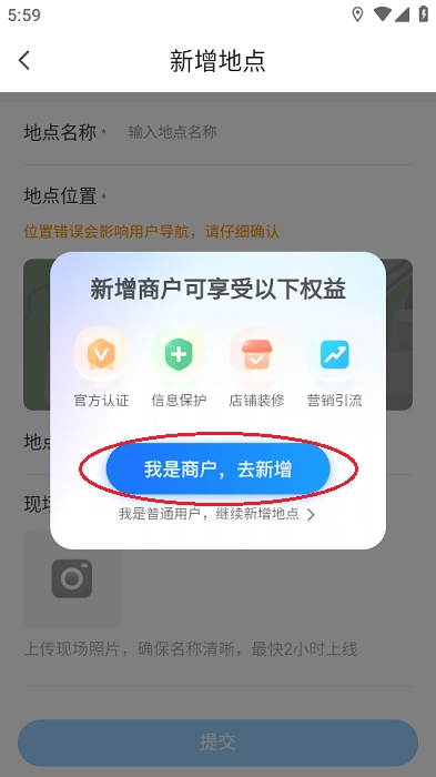 3.选择“我是商户,去新增”;