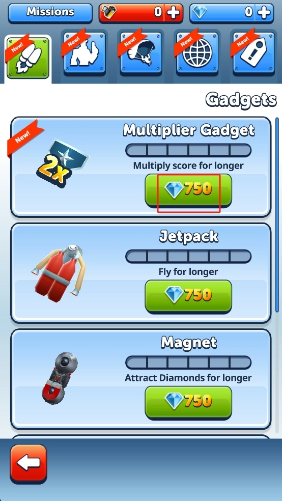 3、单次奔跑结束后,界面会显示本次奔跑距离和钻石数量,可用来购买道具或升级能力,提升得分倍率助力后续的跑酷。