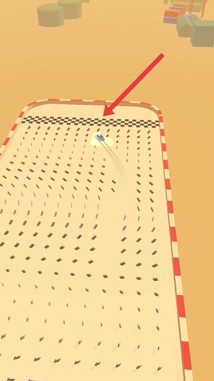 3、操控赛车冲向方格旗标识的终点线,躲避其他的障碍,完成关卡最后的冲刺,达成通关目标。