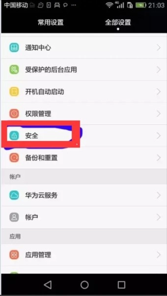 3、在【安全】菜单中找到【未知来源】,并且开启。