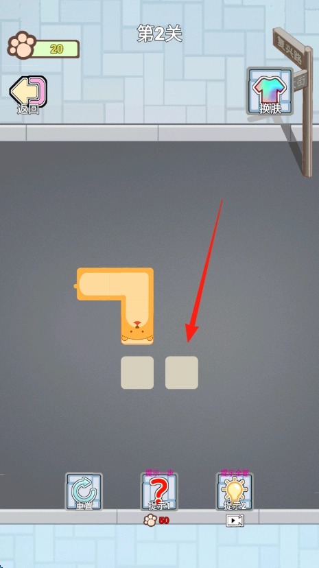 3、通关过程中会有重置,提示道具下方图标,重置关卡、获取解谜线索,通过关卡,解锁新皮肤、关卡,积累爪印。